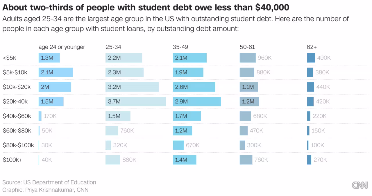 Critically, the cancellation of student debt is being paired with a plan to lift the freeze on federal student debt payments, beginning in Jan. 2023. That means many Americans who haven’t had to pay down student loans since March 2020 will have to begin doing so, eating into their cash flows.