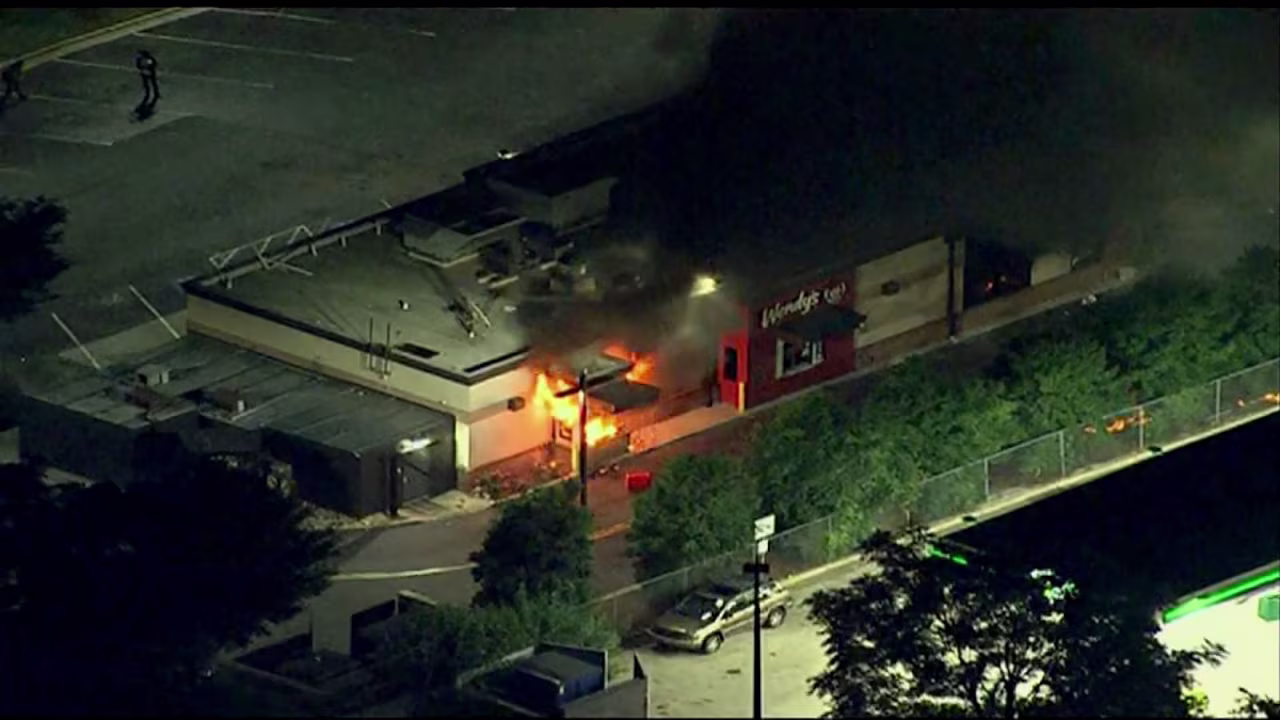 The Wendy’s where Rayshard Brooks was shot by police Friday is on fire.