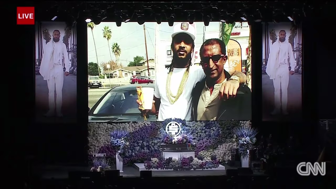 Mourners got a glimpse into Nipsey Hussle’s life with moving tribute showing photos of the slain rapper.