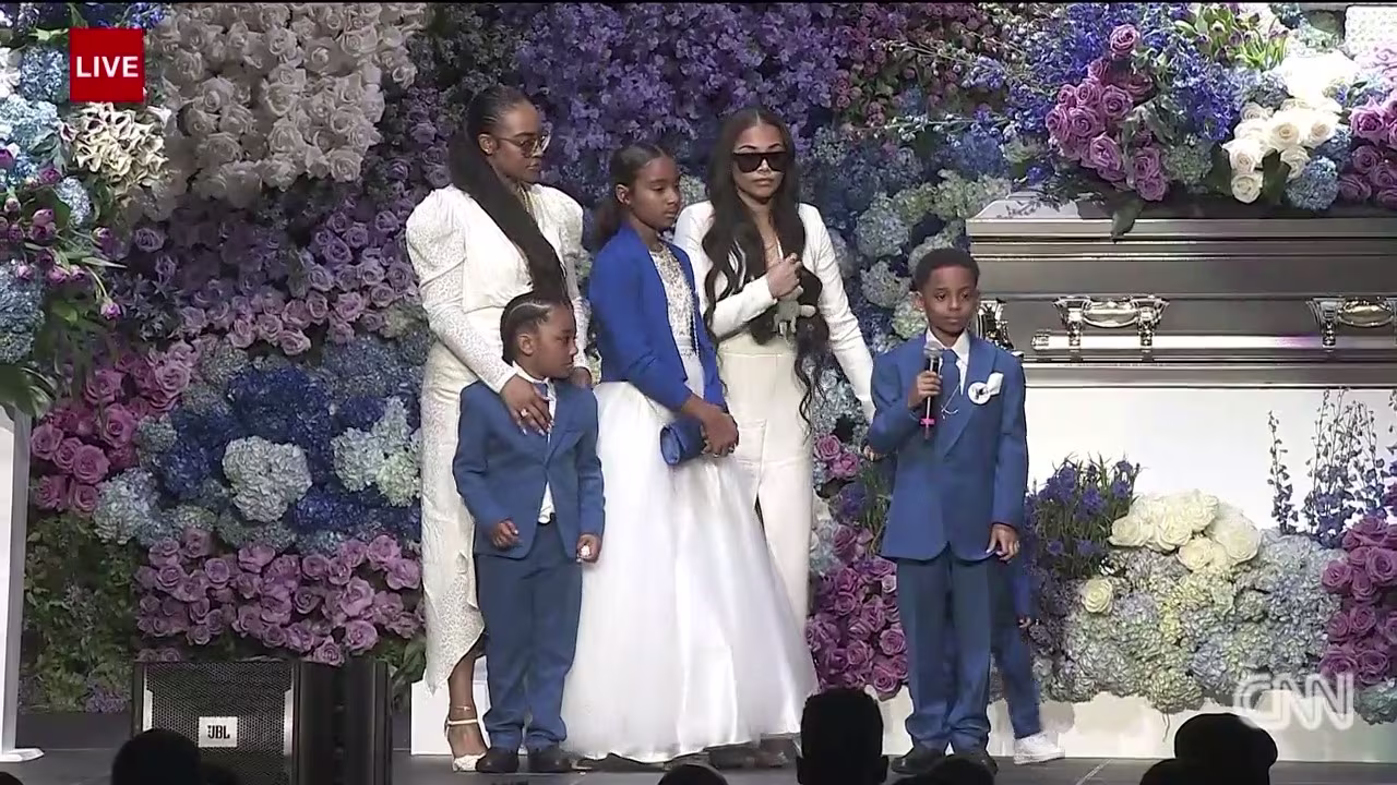 The young son of Nipsey Hussle and his daughter were among a group of the rapper’s family who appeared on stage at his memorial.