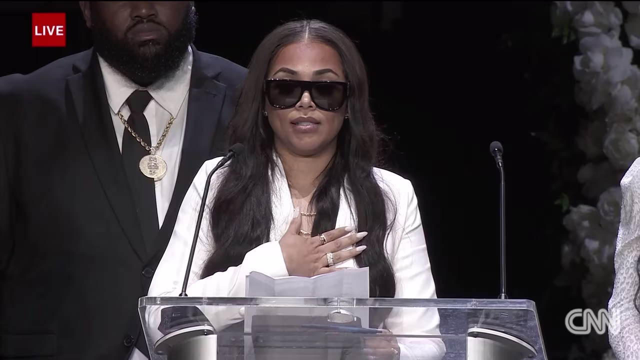 Nipsey’s girlfriend Lauren London and her son, whom she shares with rapper Lil Wayne, also appeared on stage. Her son recalled a dream he had of Nipsey. In it, he said he was playing in the ocean and Nipsey showed up.