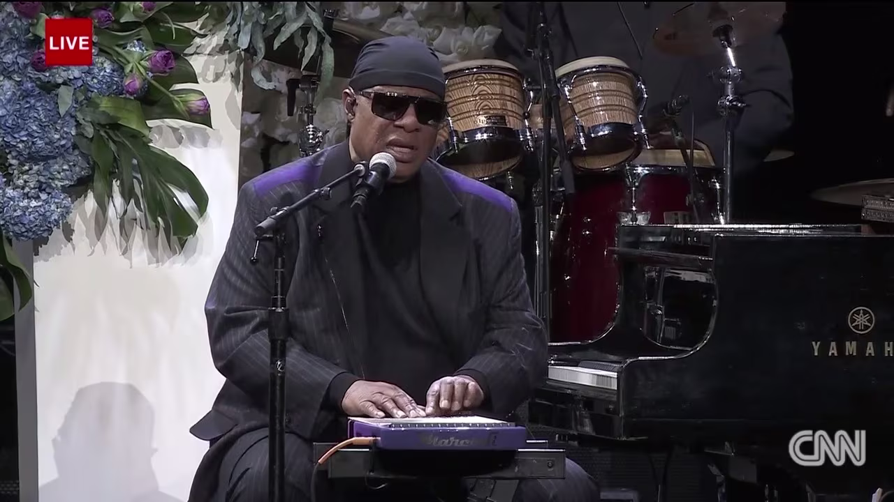 Wonder, who also performed last year at Aretha Franklin’s funeral, said he was praying that this country’s leaders could be moved to pass better gun control laws.
