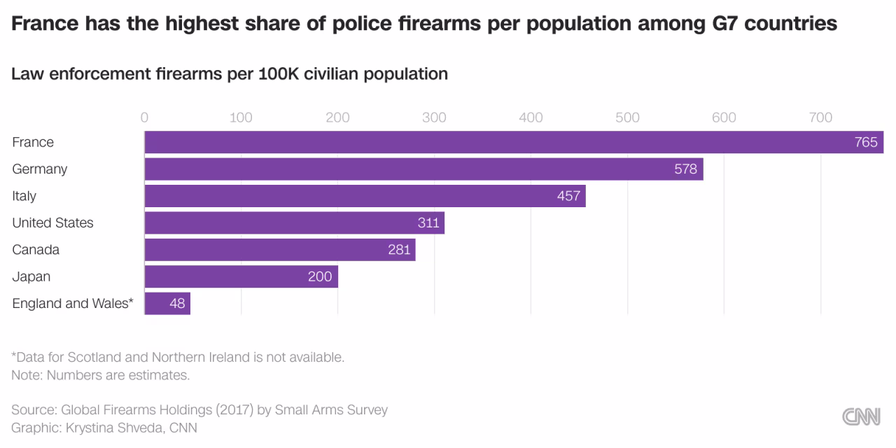 The French police are the most armed among advanced economy countries.