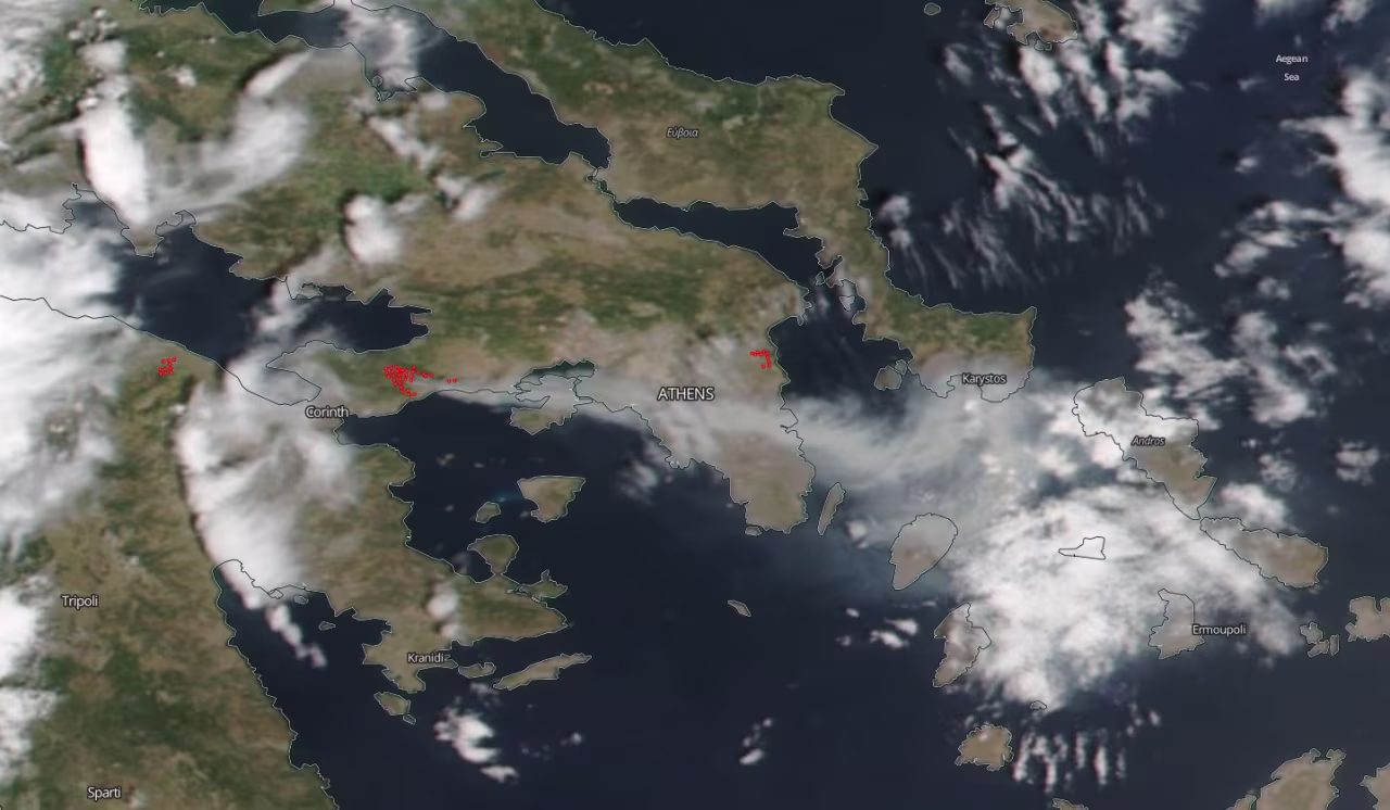 One fire is to the east of Athens near Kineta; one to the west of Athens in Kallitexnoupolis, near Mati; one near Corinth and two in Crete in the Chania region.
