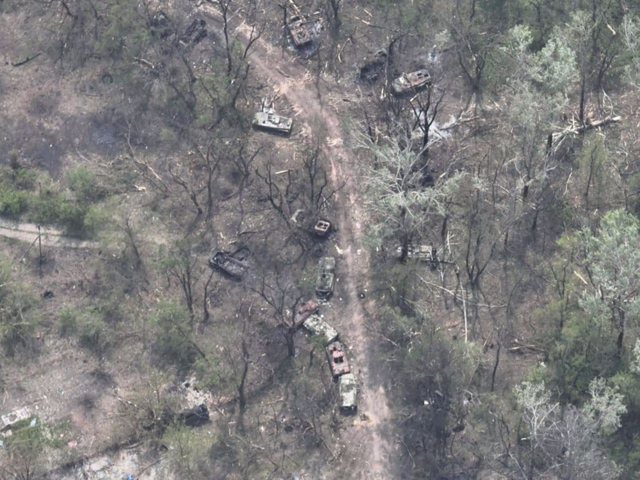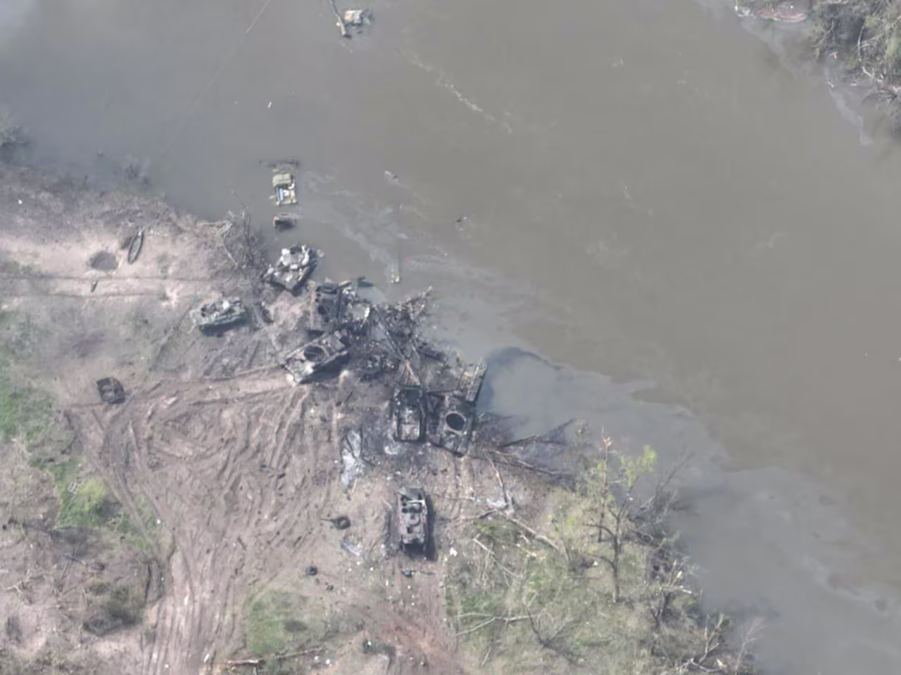 Additional photos circulating on social media, also taken by a drone, show the Russians tried to erect a second pontoon bridge across the river. That bridge, too, was blown up by the Ukrainians in addition to a number of military vehicles.