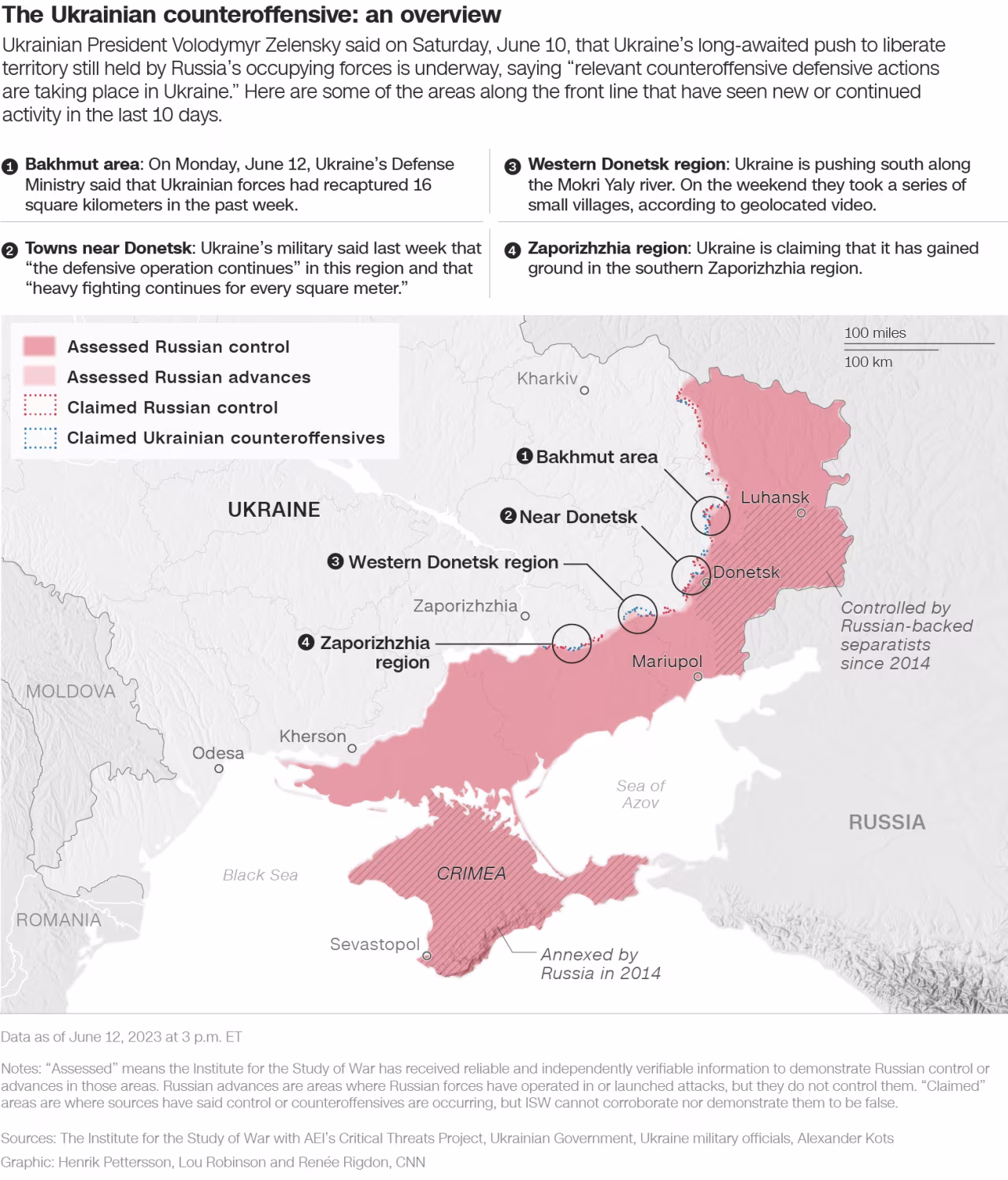 Offensive operations so far have yielded modest gains in the southern regions like Zaporizhzhia, with multi-layered Russian defenses proving tough to crack. The area is seen as a major target for Ukraine as it would mean breaking Russia’s land-bridge between annexed Crimea and eastern Donetsk.