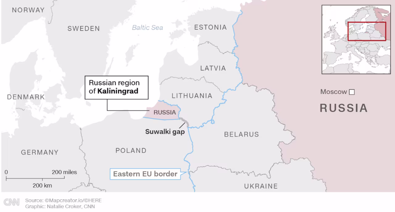 More on the Suwałki corridor: This thin strip of land, also known as the Suwałki gap, is the only overland link between the Baltic states — NATO members Estonia, Latvia and Lithuania — and the rest of the European Union. The corridor separates the Russian standalone region of Kaliningrad from Belarus and connects Polish and Lithuanian territory.