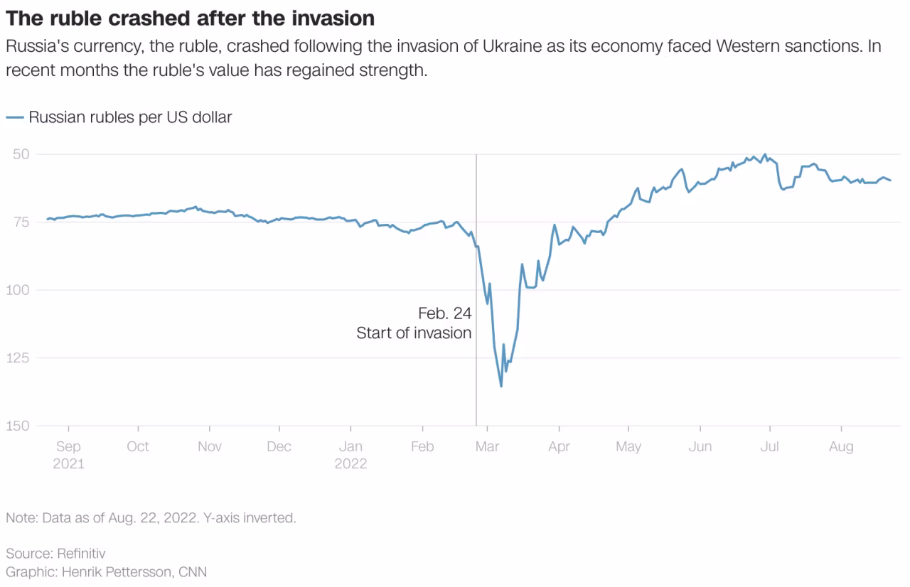 After Russia launched its invasion of Ukraine in February, its currency — the ruble — crashed, with Moscow scrambling to prevent financial meltdown.