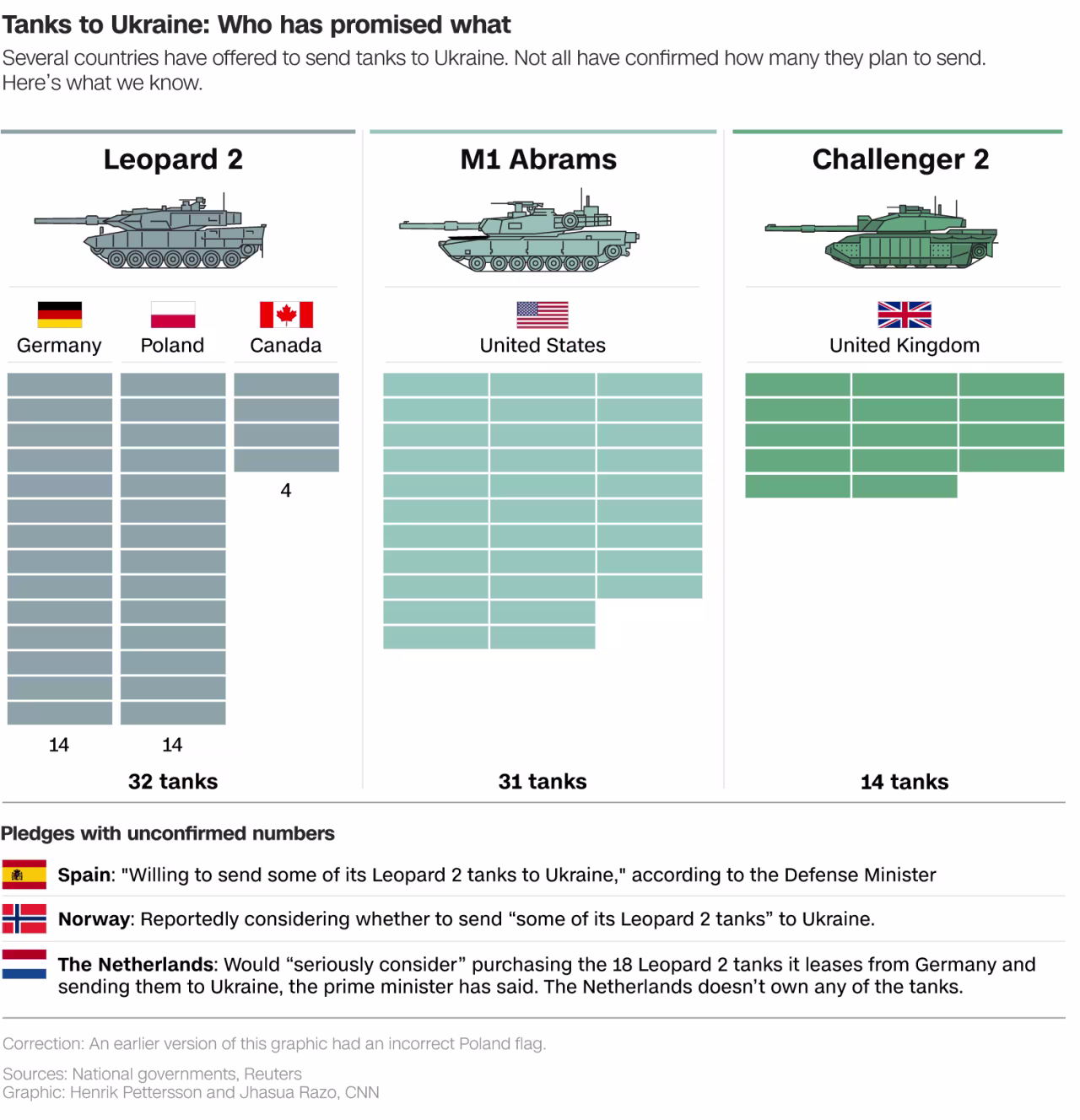 What we know so far about the number of tanks pledged to Ukraine from each country