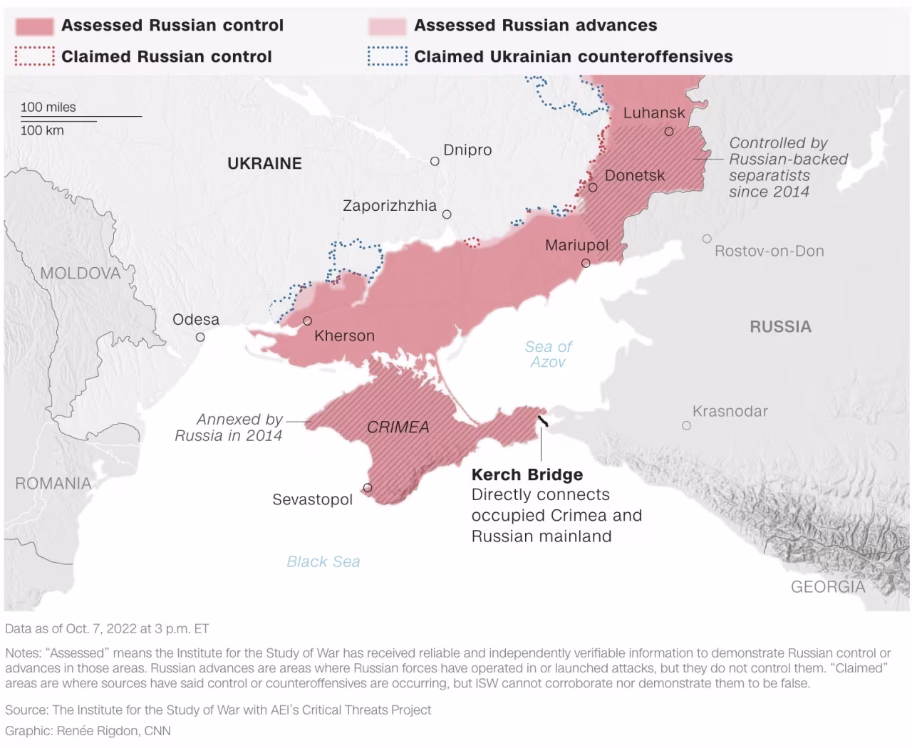 Here’s a look at where the state of control stands on Ukrainian territories along with the Crimean bridge:
