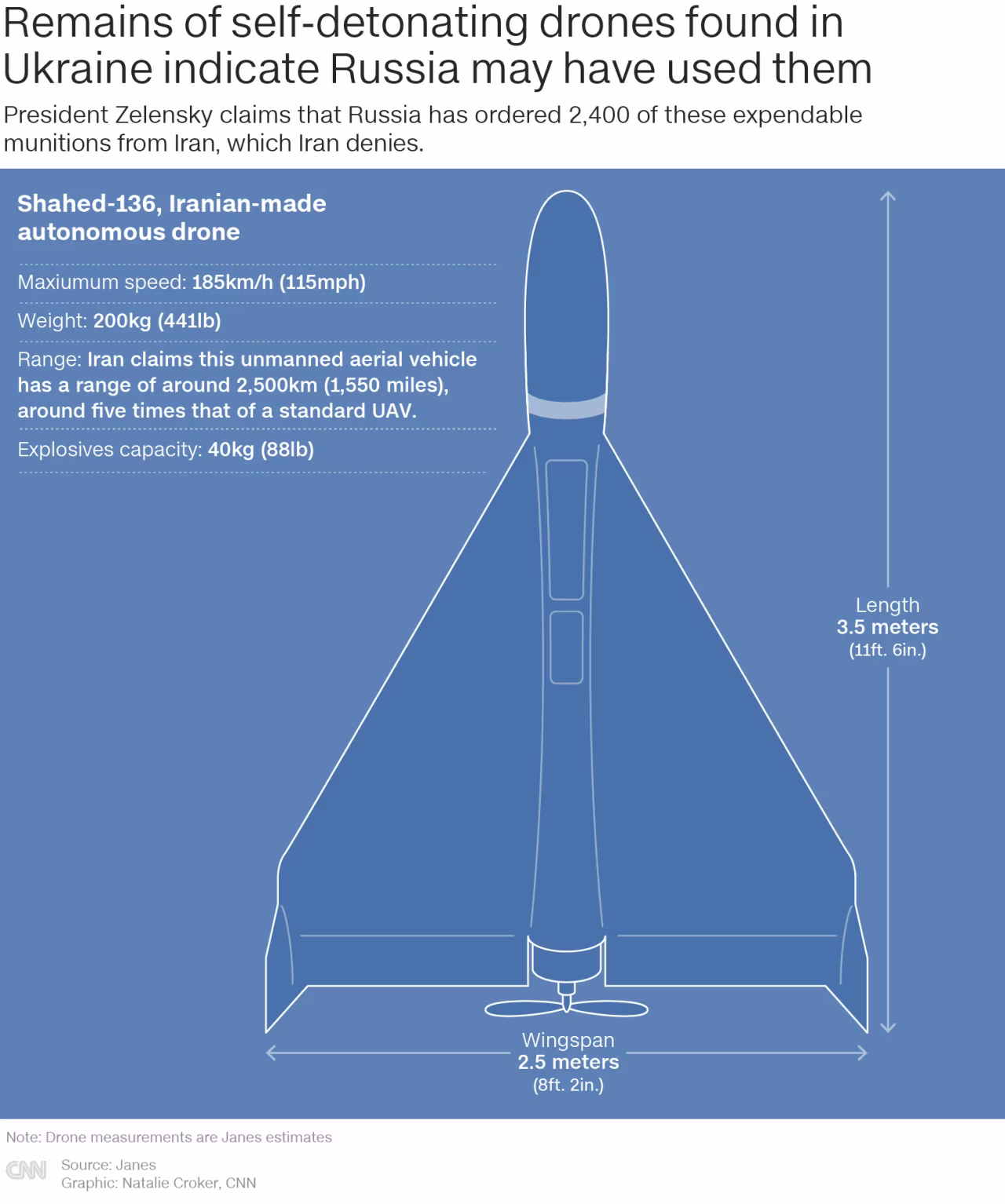 Russia’s air campaign against Ukrainian power plants and other crucial infrastructure has relied on the attack drones, which are designed to crash into a target and explodeUkrainian President Volodymyr Zelensky has said more than a third of his country’s energy sector has been “destroyed” in the past month.