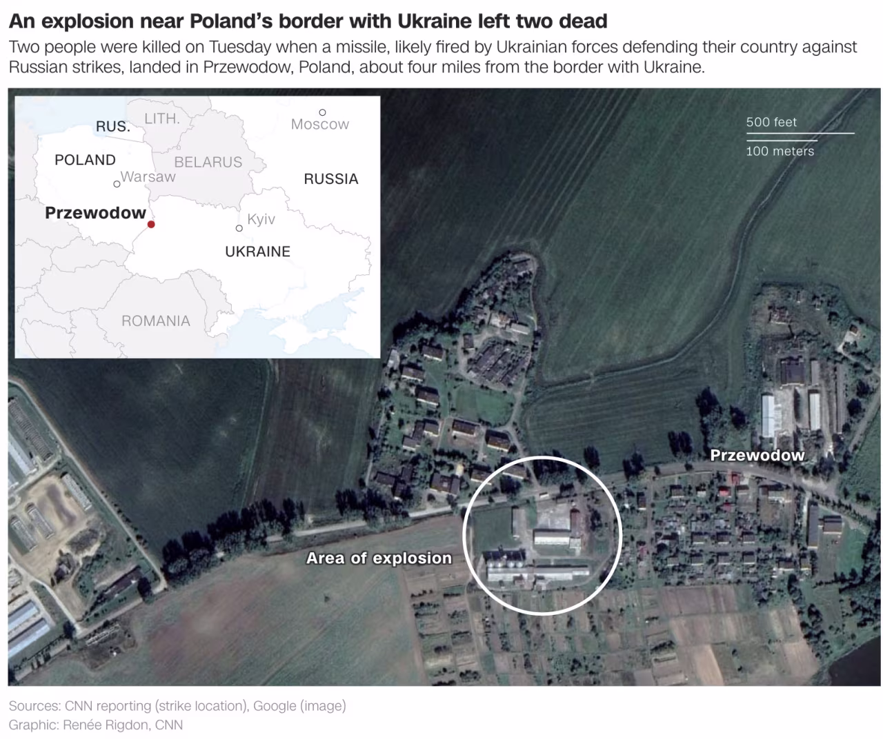 Przewodow missile fired by Ukraine, analysis suggests: NATO, Polish and US officials have said that the deadly missile strike in Poland Tuesday was likely launched by Ukrainian air defenses, but that Russia bore ultimate responsibility. Ukrainian investigators arrived at the site of the strike after President Volodymyr Zelensky, who has said the missile was not Ukrainian, demanded that a Ukrainian team join the investigation, which is being led by Polish and US experts. Russia denied “any relation” with the missile incident on Wednesday, and a Kremlin spokesperson said that some leaders have made statements without understanding “what actually happened.”