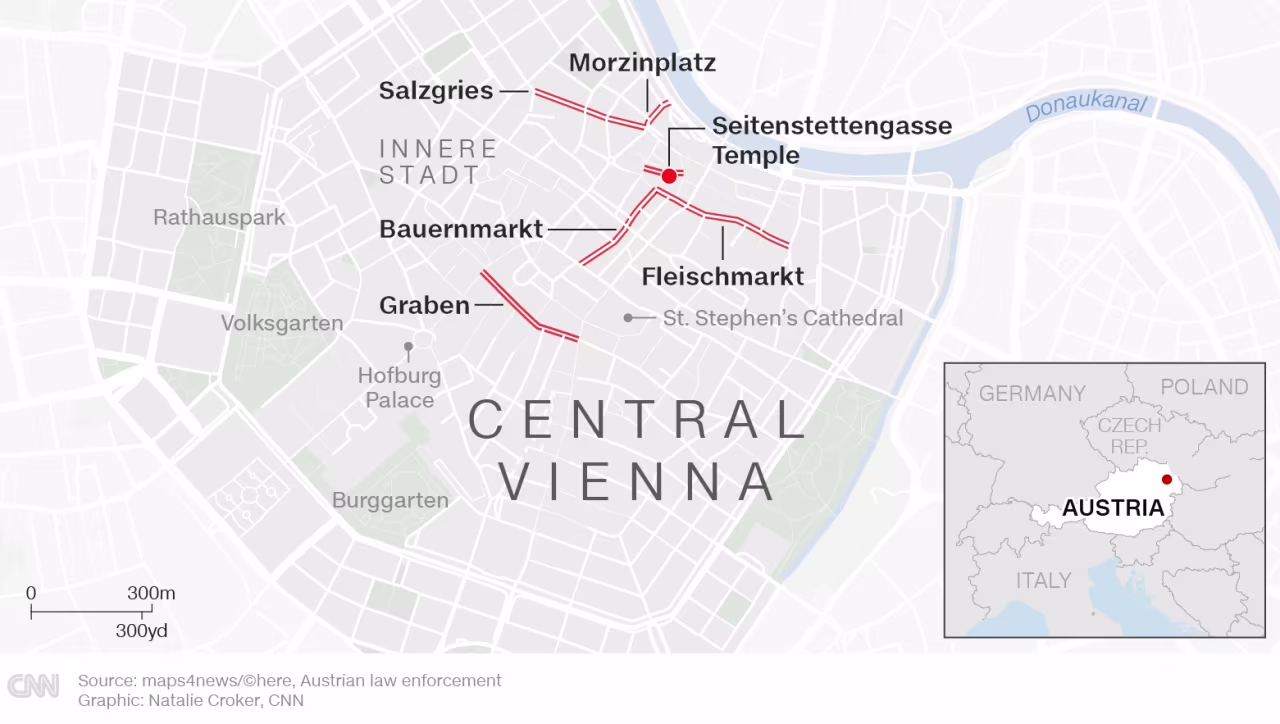 • Suspects: Authorities said that so far, there is no evidence that another person was involved in the attack, but investigation is still ongoing. Until the possibility of a further attacker is ruled out, Vienna residents have been advised to stay at home.