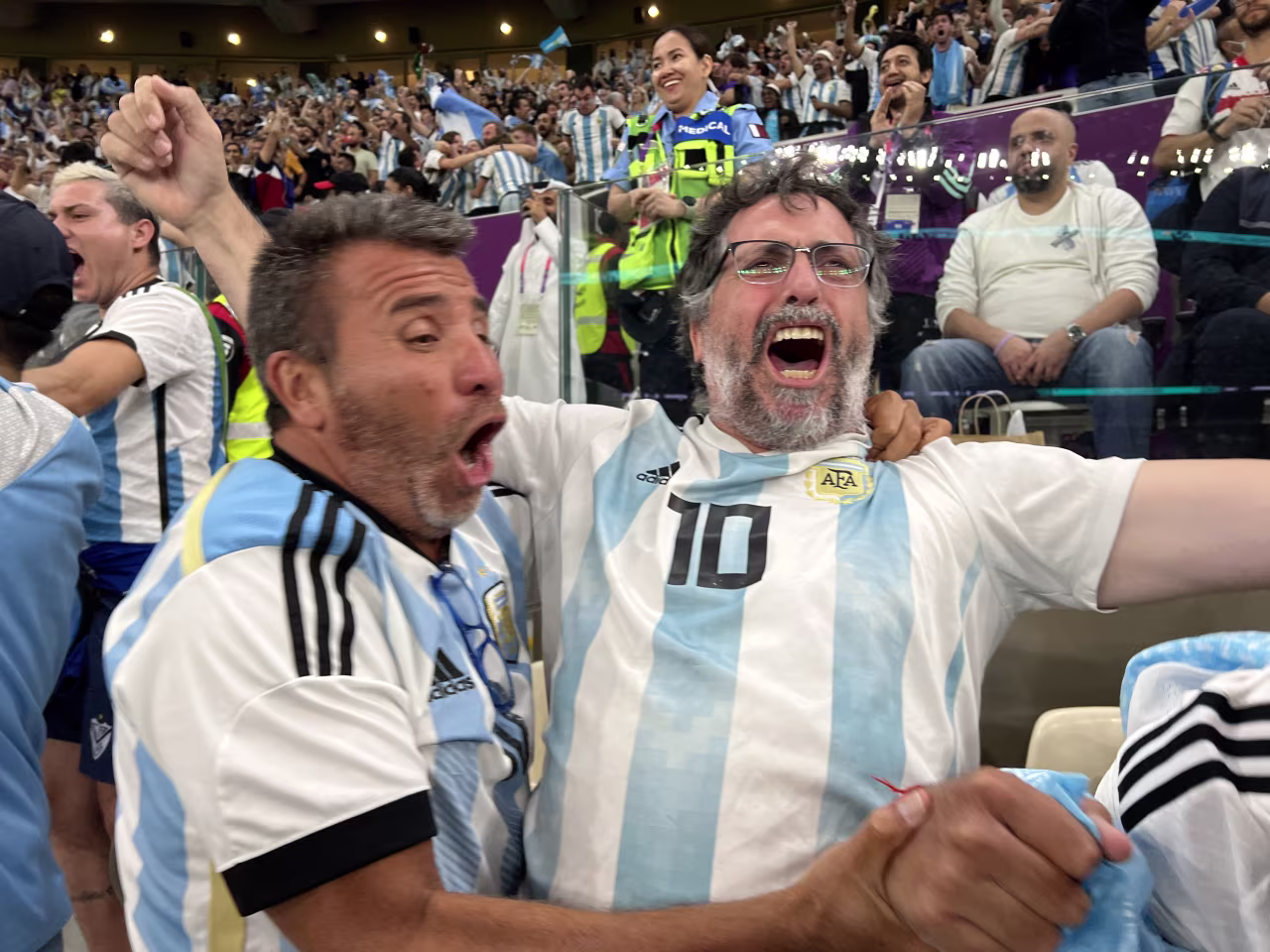 Argentina fans celebrate the squad's goal.