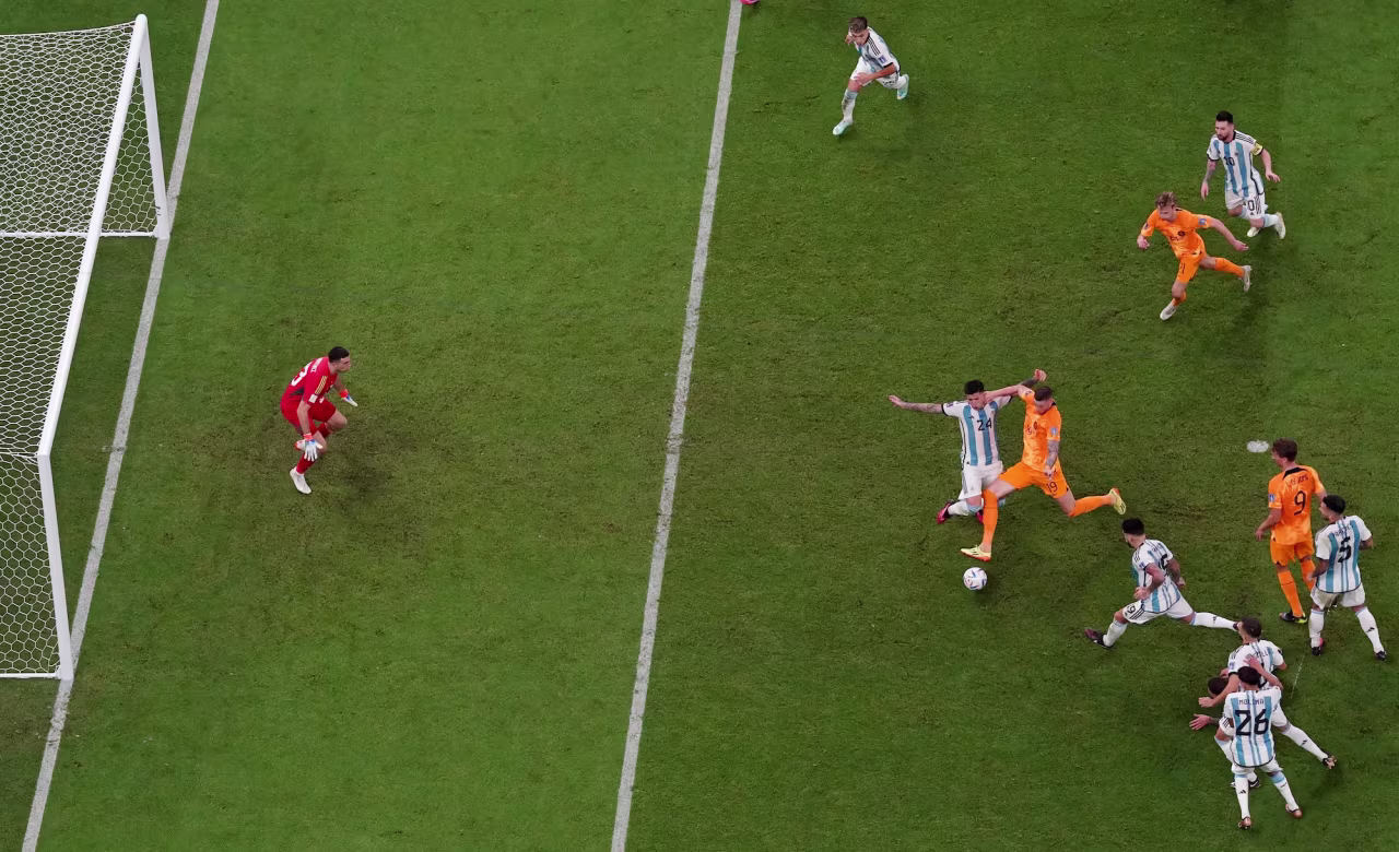 Nahuel Molina scored in the 35th minute to give Argentina a lead over the Netherlands in their quarterfinal match.