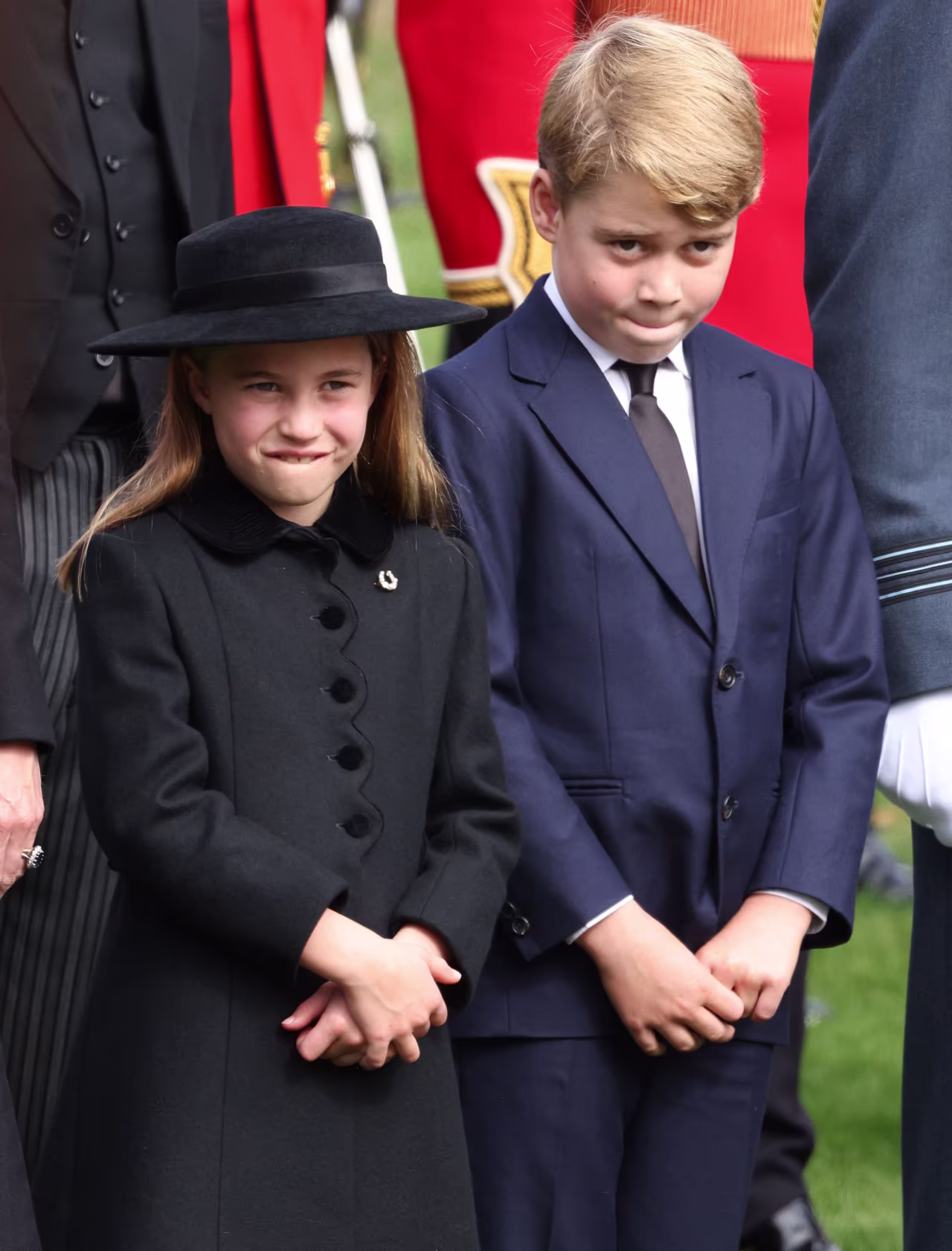 The brooch that Princess Charlotte wore to the state funeral service was a gift from her great-grandmother, Kensington Palace told CNN. The diamond brooch was small and horseshoe-shaped.