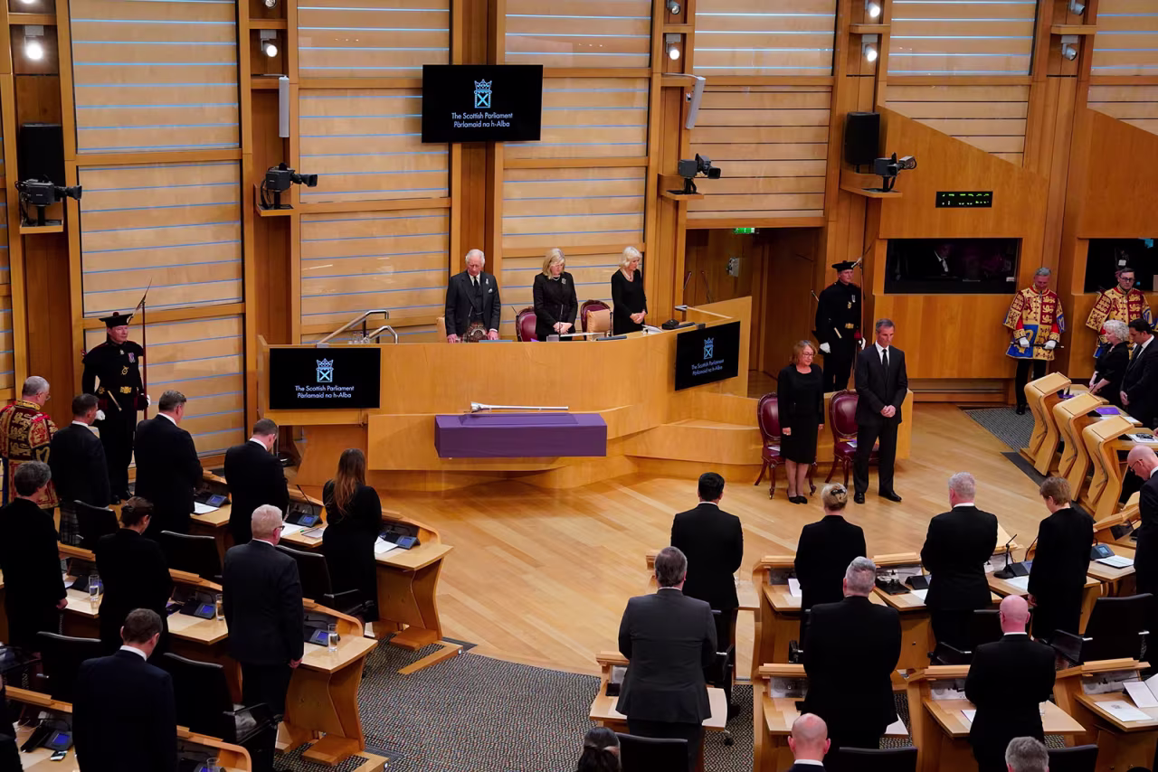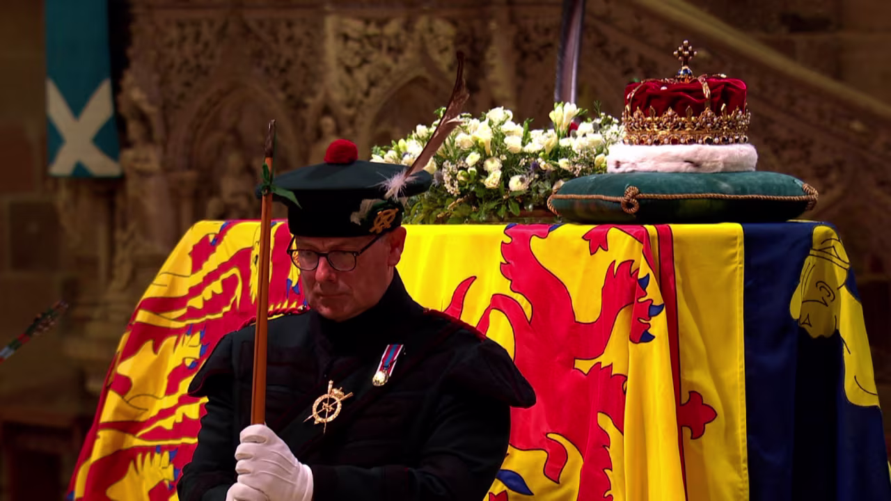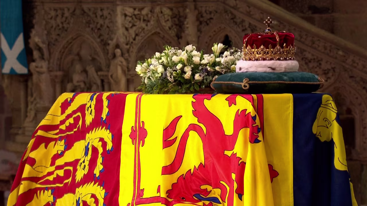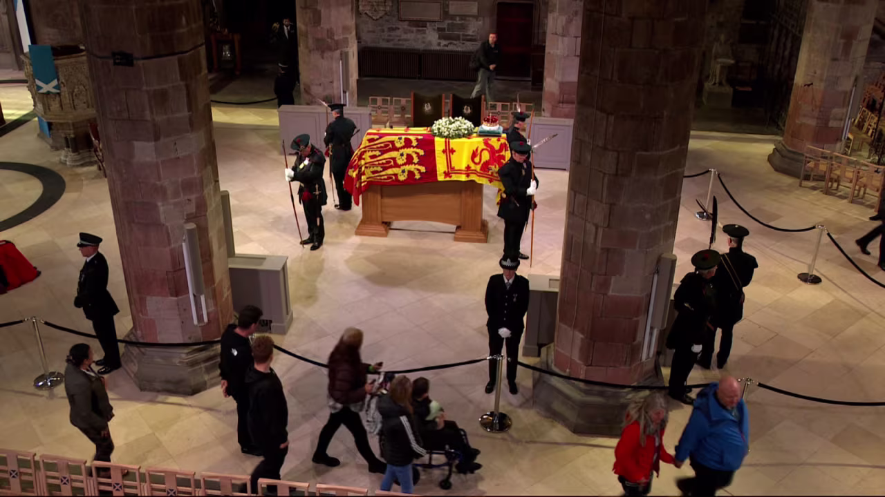 - Queen Elizabeth II’s coffin was taken from Edinburgh’s Palace of Holyroodhouse to St. Giles’ Cathedral, where King Charles III and other dignitaries attended a service of thanksgiving. Her body will lie in rest there before being flown to London on Tuesday.