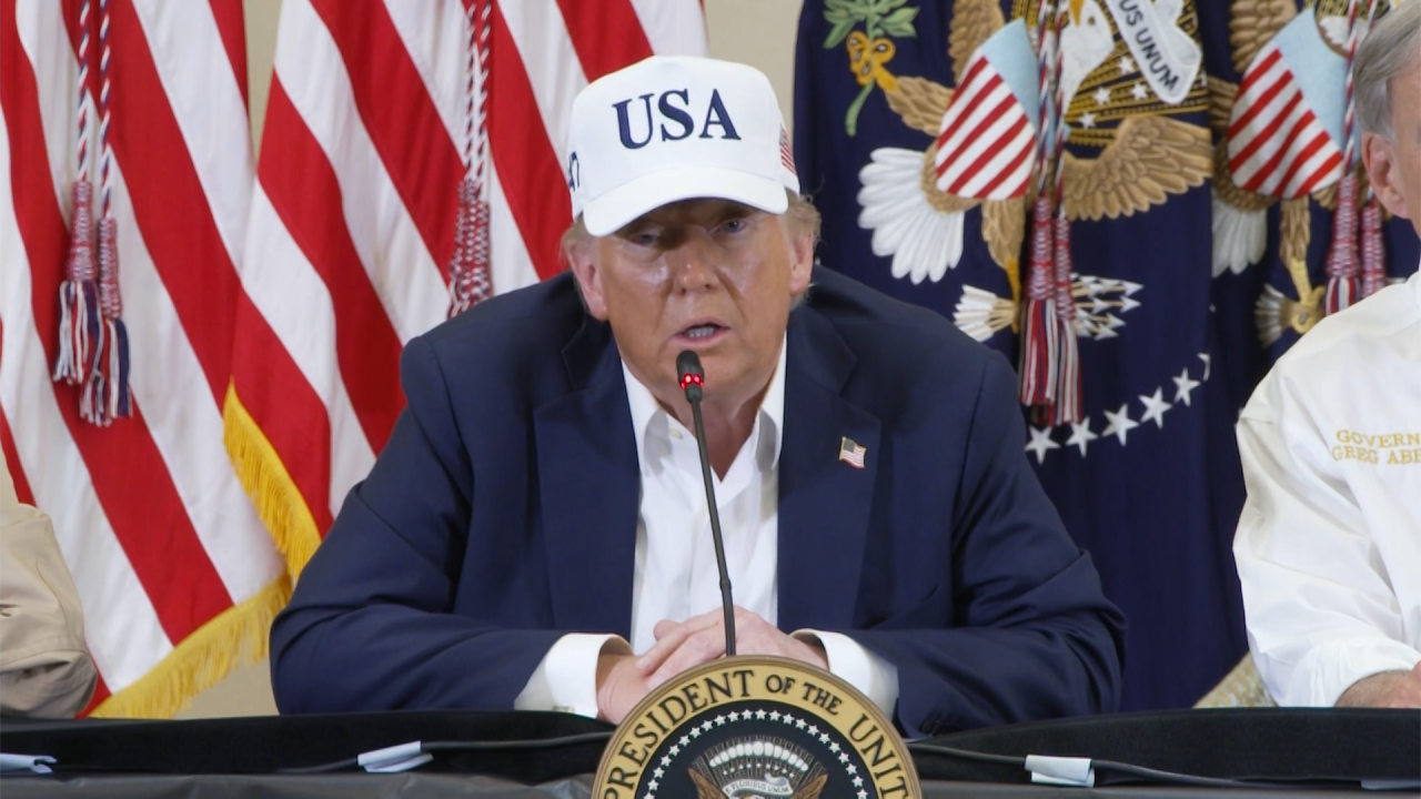 President Donald Trump spoke in Kerrville, Texas in the aftermath of devastating flooding in the region. He admonished one reporter for asking his response to families questioning delays of flood alerts.