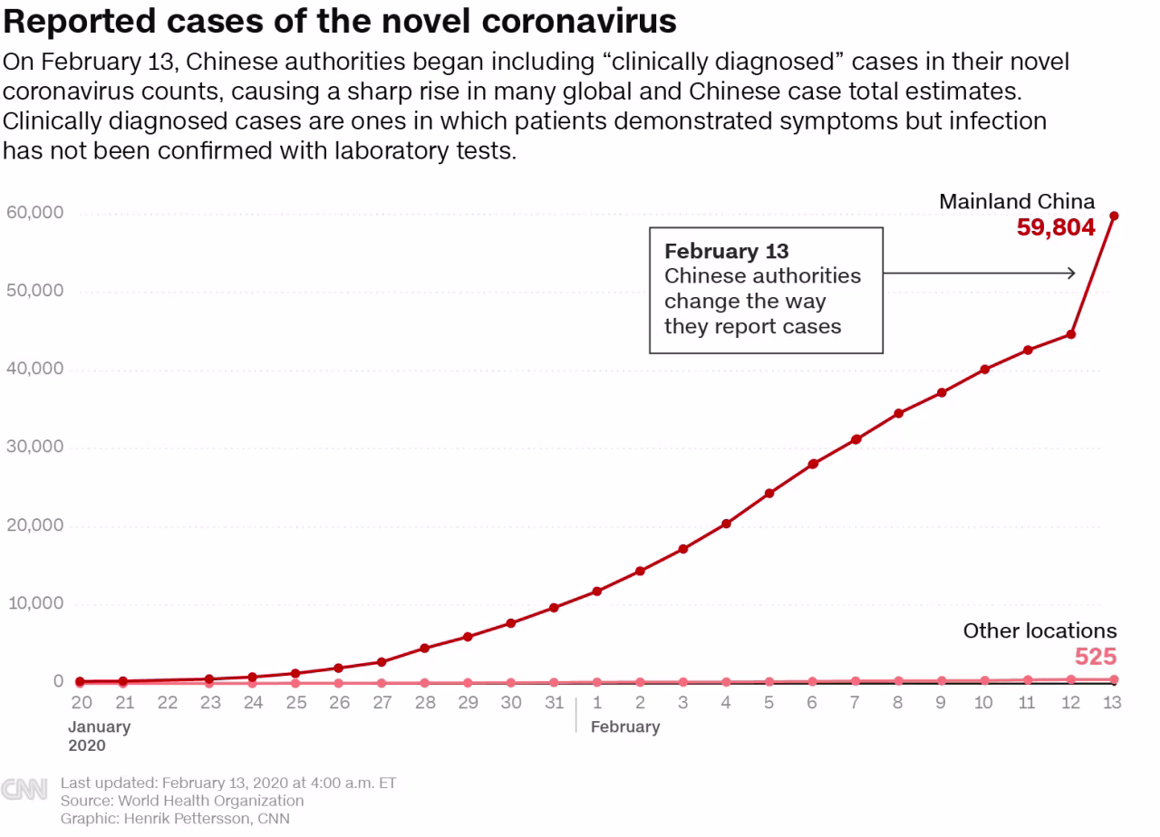 But one of the top reasons for the variation in numbers is the constantly changing definitions of what constitutes a case in China: Is it just when someone has a lab-confirmed test? Is it when they exhibit symptoms indicative of infection? Should someone who is asymptotic be counted?