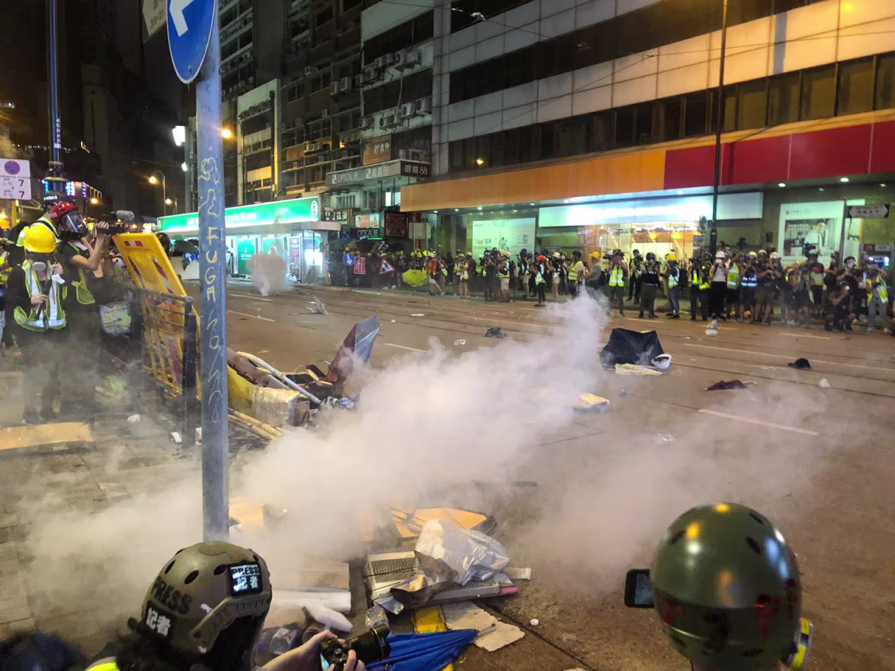 The streets around the Sheung Wan district, where police and protesters are still facing off, are fogged by the toxic, burning gas. It’s also seeping into people’s homes through windows and air conditioning units in this highly residential area.