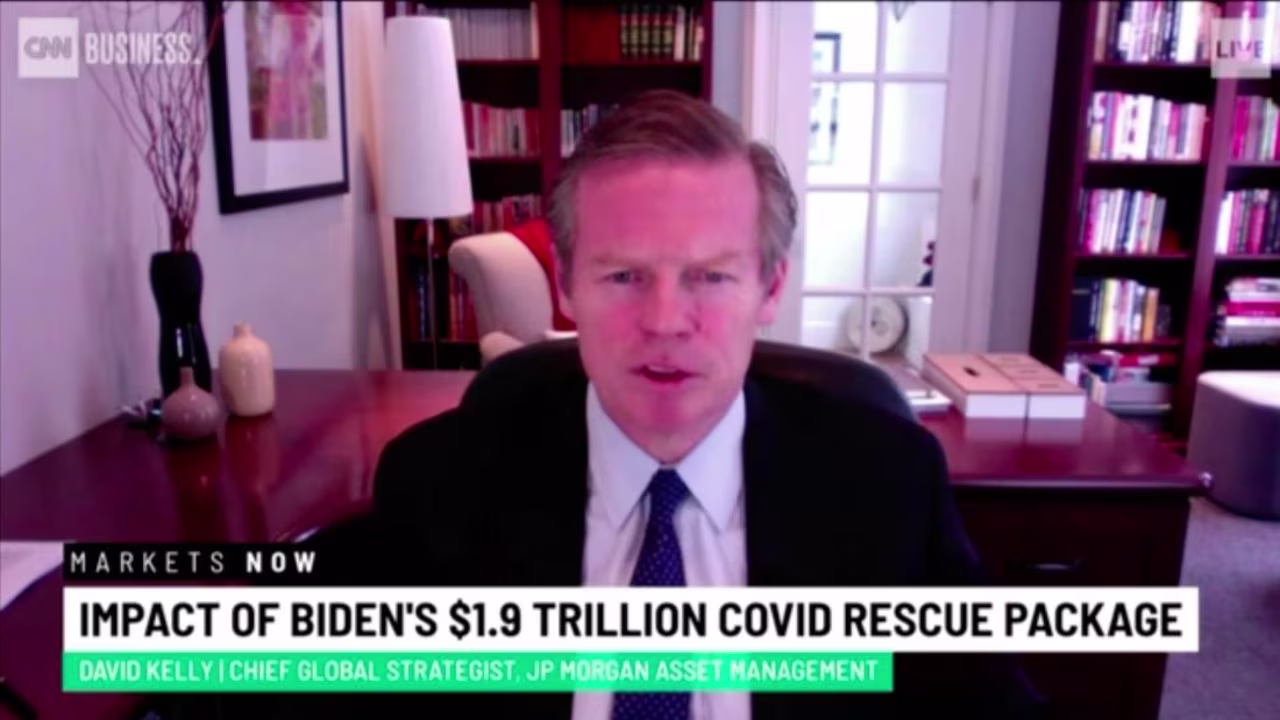 Federal Reserve Chairman Jerome Powell could give a “pat on the back” for President Joe Biden’s stimulus plan during this afternoon’s press conference, David Kelly, chief global strategist at JPMorgan Asset Management, told Christine Romans on the CNN Business digital live show Markets Now. Biden has proposed a $1.9 trillion stimulus plan.