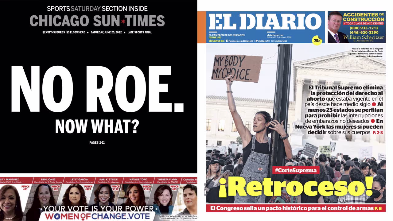How front pages covered the historic Supreme Court decision overturning Roe v. Wade