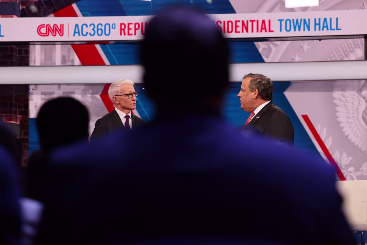 Former New Jersey Gov. Chris Christie speaks at CNN Republican Presidential Town Hall moderated by CNN’s Anderson Cooper in New York on Monday, June 12.
