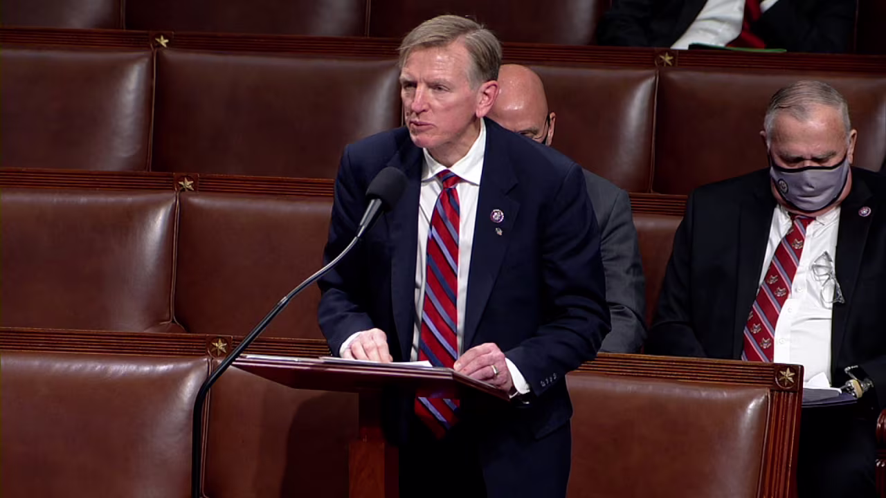 US Rep. Paul Gosar walks on to a subway to the US Capitol Building before Wednesday's vote.