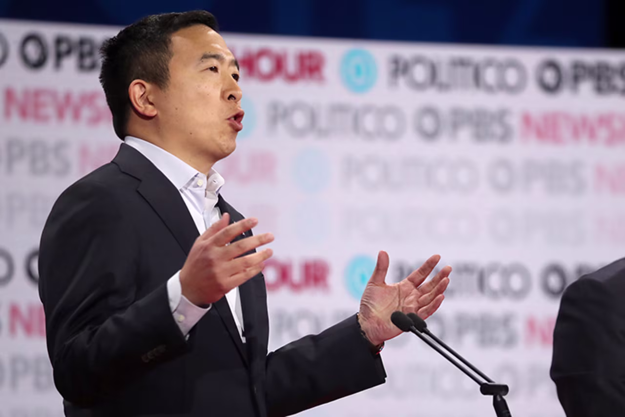 Businessman Andrew Yang drew applause tonight after calling for more women in government because “money and men are tied together” in a country struggling with gender inequality.