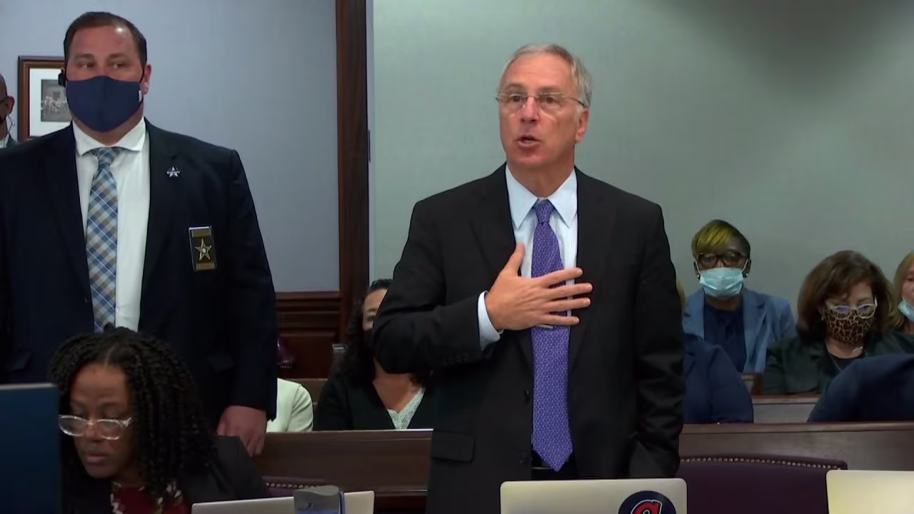 As court resumed after a lunch break, defense attorney Kevin Gough called for a mistrial based on the question asked by state prosecutor Larissa Ollivierre.