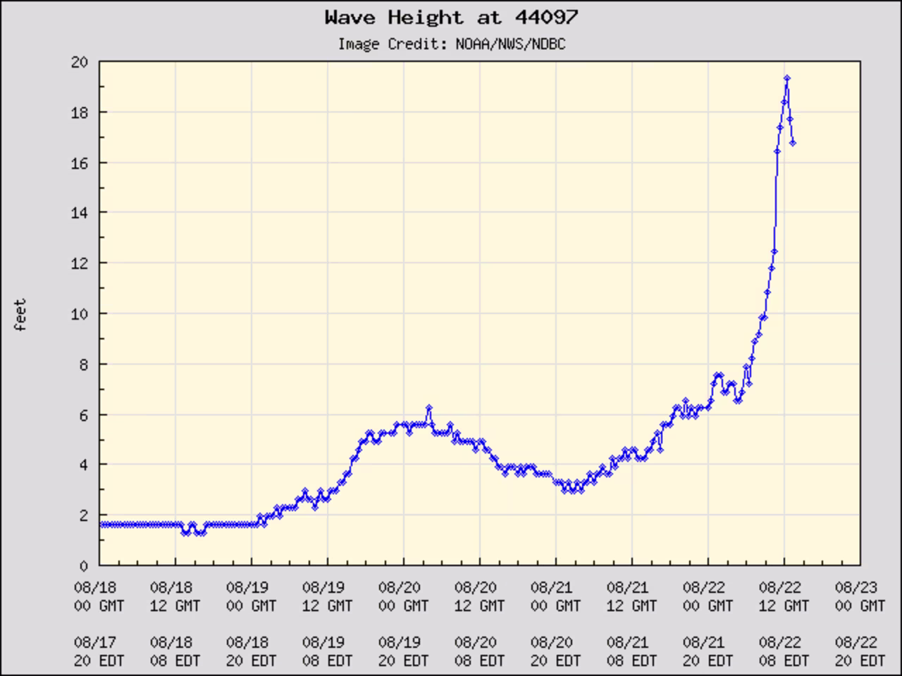 “Another Weatherflow station near Point Judith, Rhode Island, recently measured a sustained wind of 43 mph (69 km/h) and a gust to 51 mph (82 km/h), while a station at Great Gull Island near the eastern end of Long Island, New York, measured a sustained wind of 41 mph (66 km/h) and a gust to 56 mph (90 km/h),” the update said.
