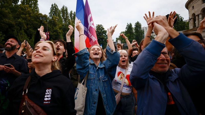 Cheers erupted on the streets of Paris late Sunday as projected results suggested the left-wing New Popular Front (NFP) would beat the far-right National Rally (RN) party in France’s snap parliamentary election.